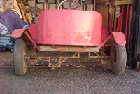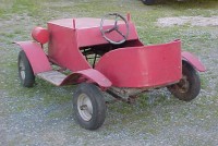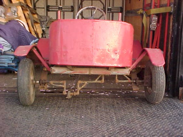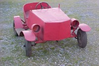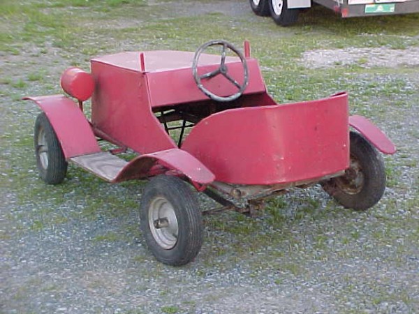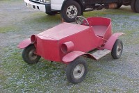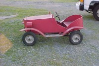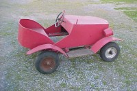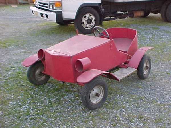 What a great find from Mullica Hill, New Jersey. Purchased from the now closed “Yellow Brick Road” toy store. Made by an american engineer out of steel and made to function just like a child pedal car. Leaf springs, shocks, tube steel frame, tight steering and grease fittings makes this one of a kind vehicle hard to pass by. Get in and and drive, a real cruiser…………