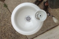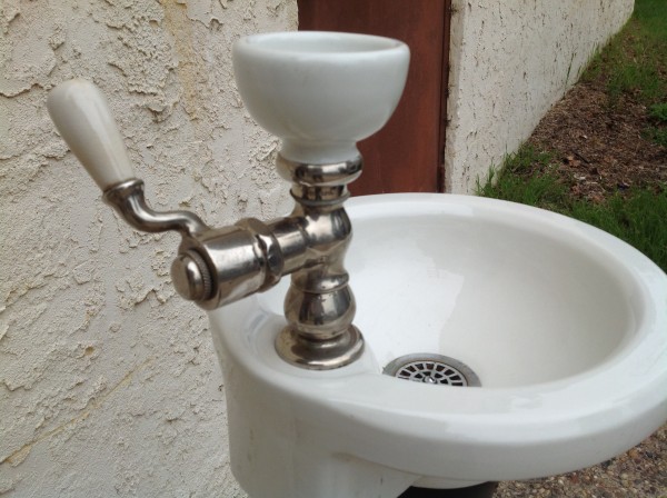 Vintage park/playground industrial water fountain with very unusual water bubbler. Porcelain in very good condition. Cast iron pipe and base included. Picture this in your bathroom or garden………
