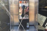 VintageĀ coin operated pay phone with Lucite enclosure in as found condition. Comes complete with both keys and T wrench. Lucite has some minor scratches that may be polished out. Phone looks complete but will need servicing. What you see is what you get. Neat gameroom item…………..