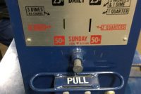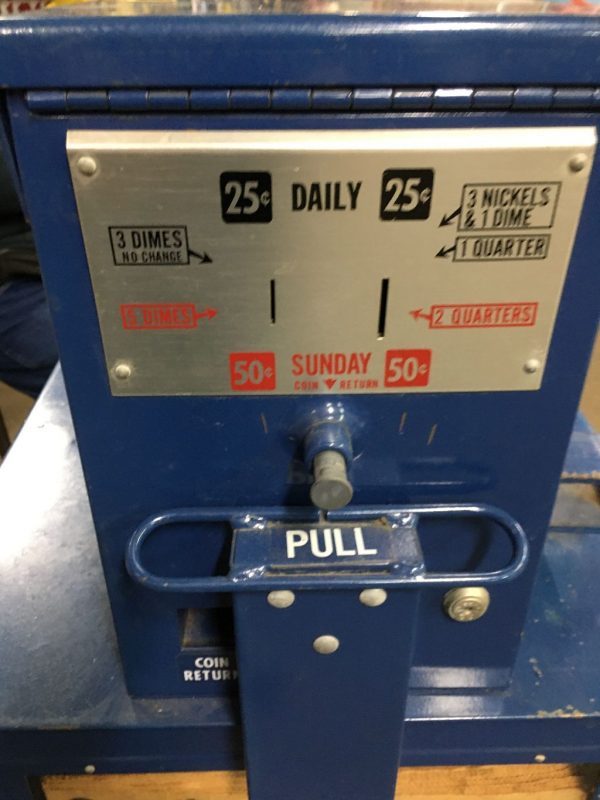 Vintage Philadelphia Bulletin coin operated newspaper vendor in as found condition. Looks complete with newspaper. Key missing……………..