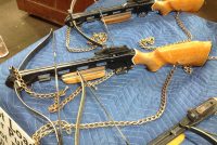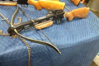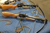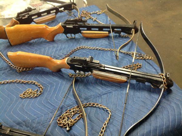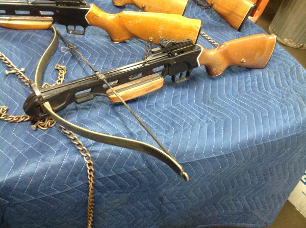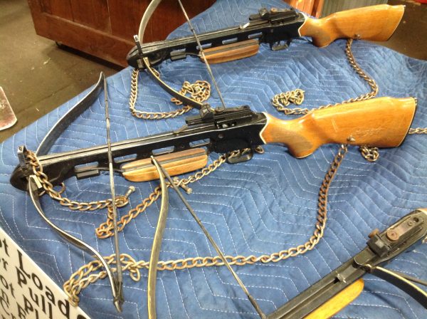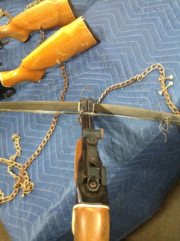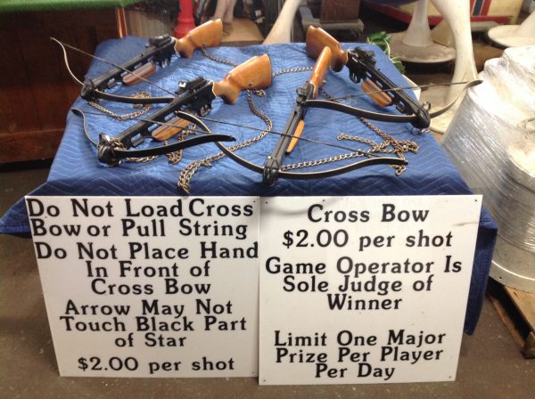 Vintage Playland Amusement Park, Rye, NY crossbow game bows in as found condition. 4 available. Arrows not included, just the crossbow.