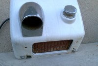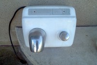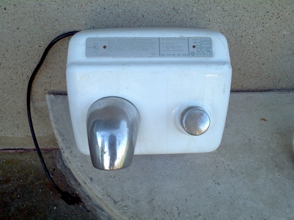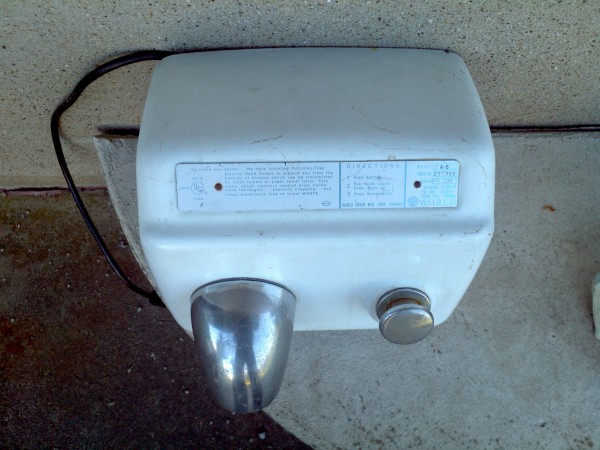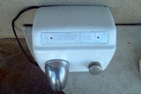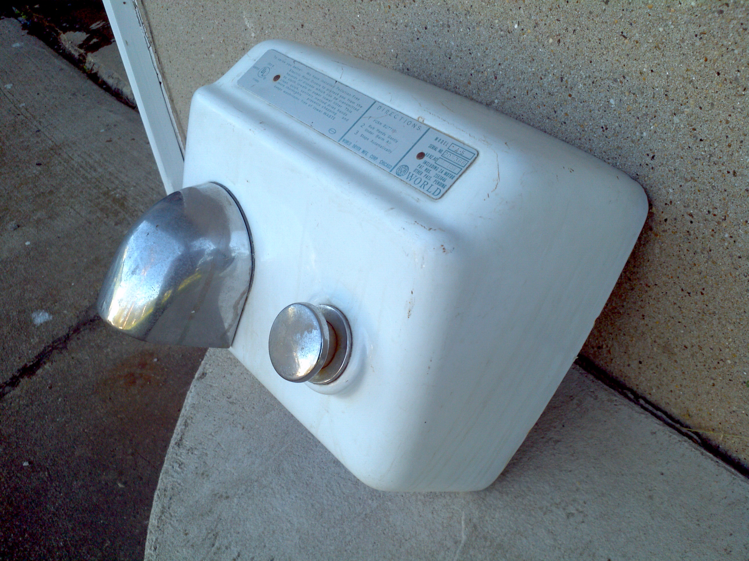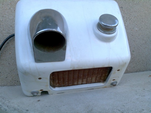 Vintage porcelain hand dryer in working condition. Push in the chrome button and a timed supply of hot air is dispensed. Great for any bathroom decor……..