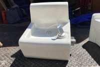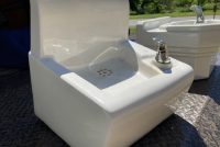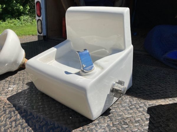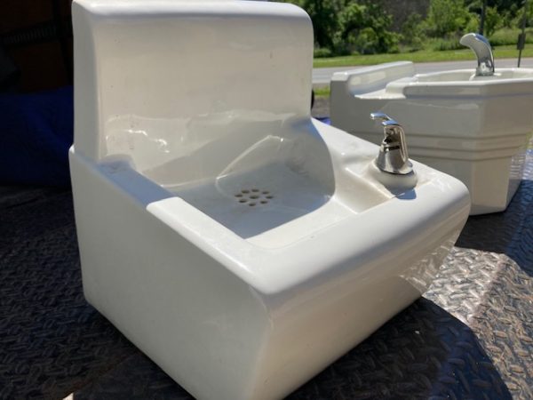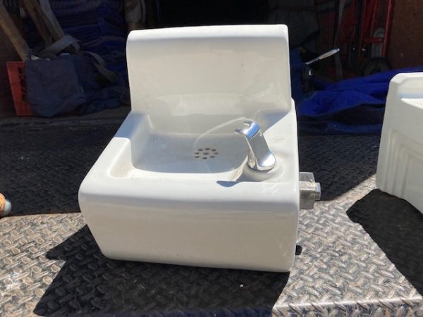 Vintage porcelain school house drinking fountain in as found condition. Measuring 5″ tall x 13″ deep x 14″ wide. Nice shape