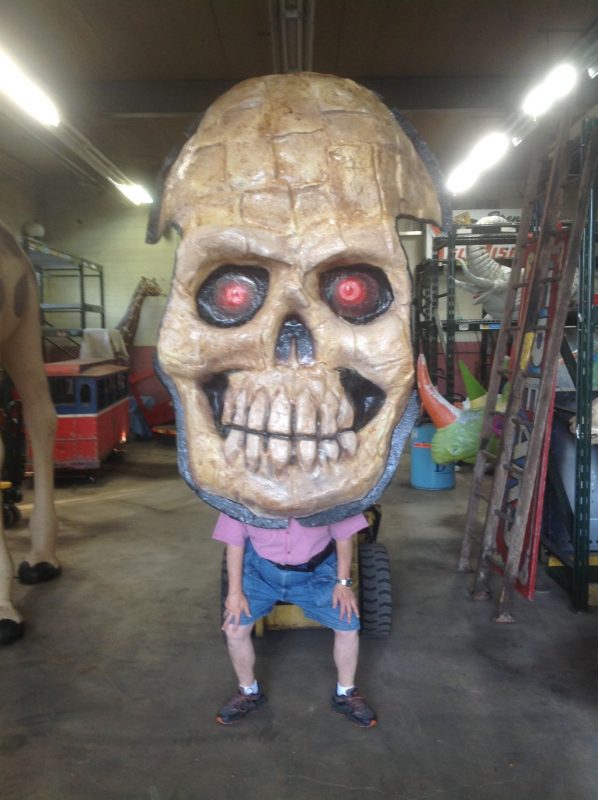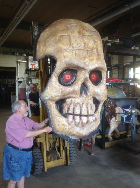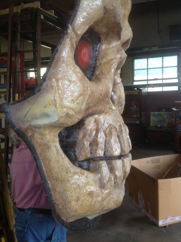 Vintage restored Wildwood NJ haunted house skull in very nice condition. Made for a now closed old haunted house along the Wildwood boardwalk back in the 1960’s. Massive size about 7′ tall x 4′ wide. Ready to be displayed in your haunt or mancave………