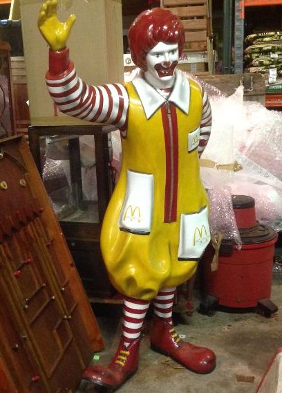 Vintage Ronald McDonald playland fiberglass statue. Figure has been nicely touched up by local artist. Very nice example……….