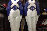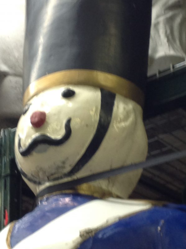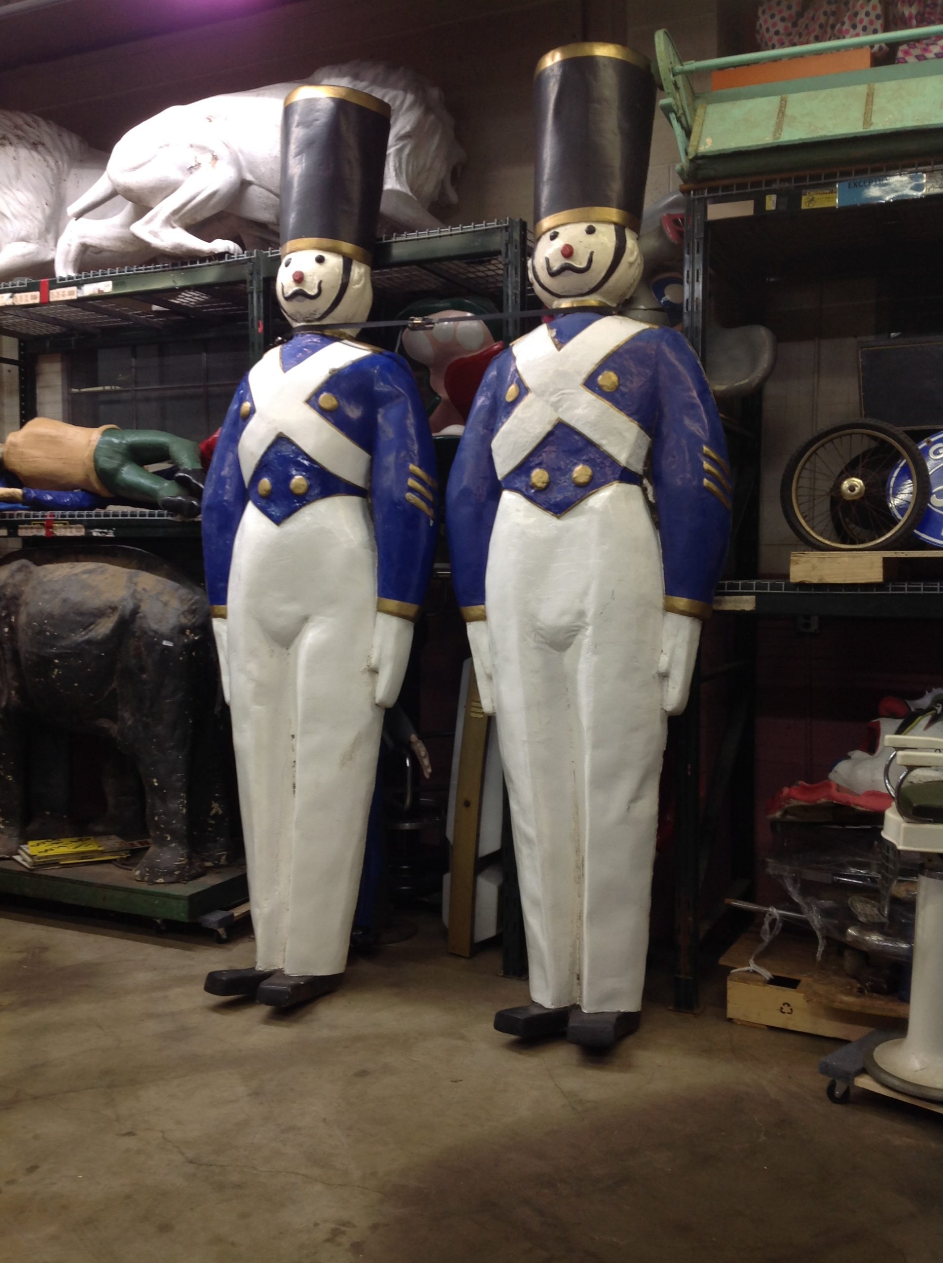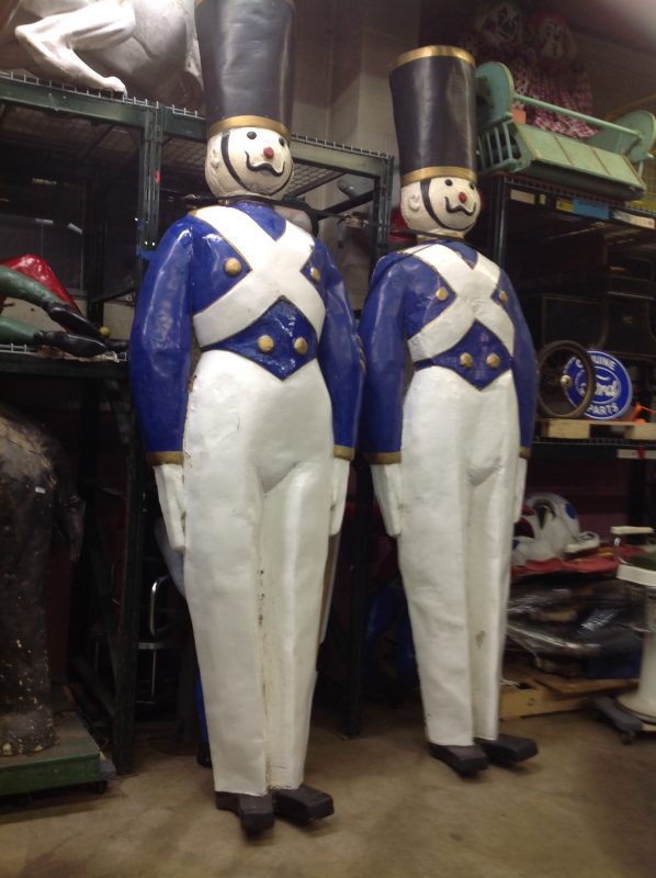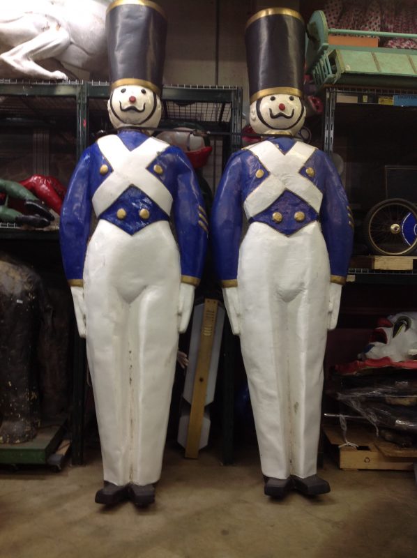 Vintage Playland Amusement Park Rye, NY Soldiers in as found condition. These massive guys started their career at the world famous Danbury Fair in Danbury ,CT, over 60 years ago. Measuring in at 12′ tall x 44″ wide, Soldiers are ready to serve and protect your most cherished Christmas display. Made of silastic and other materials, so they can withstand the weather. Overall the condition is good but are showing signs of wear hear and there. Light restoration and a fresh coat of paint will make these fellows very happy……….
