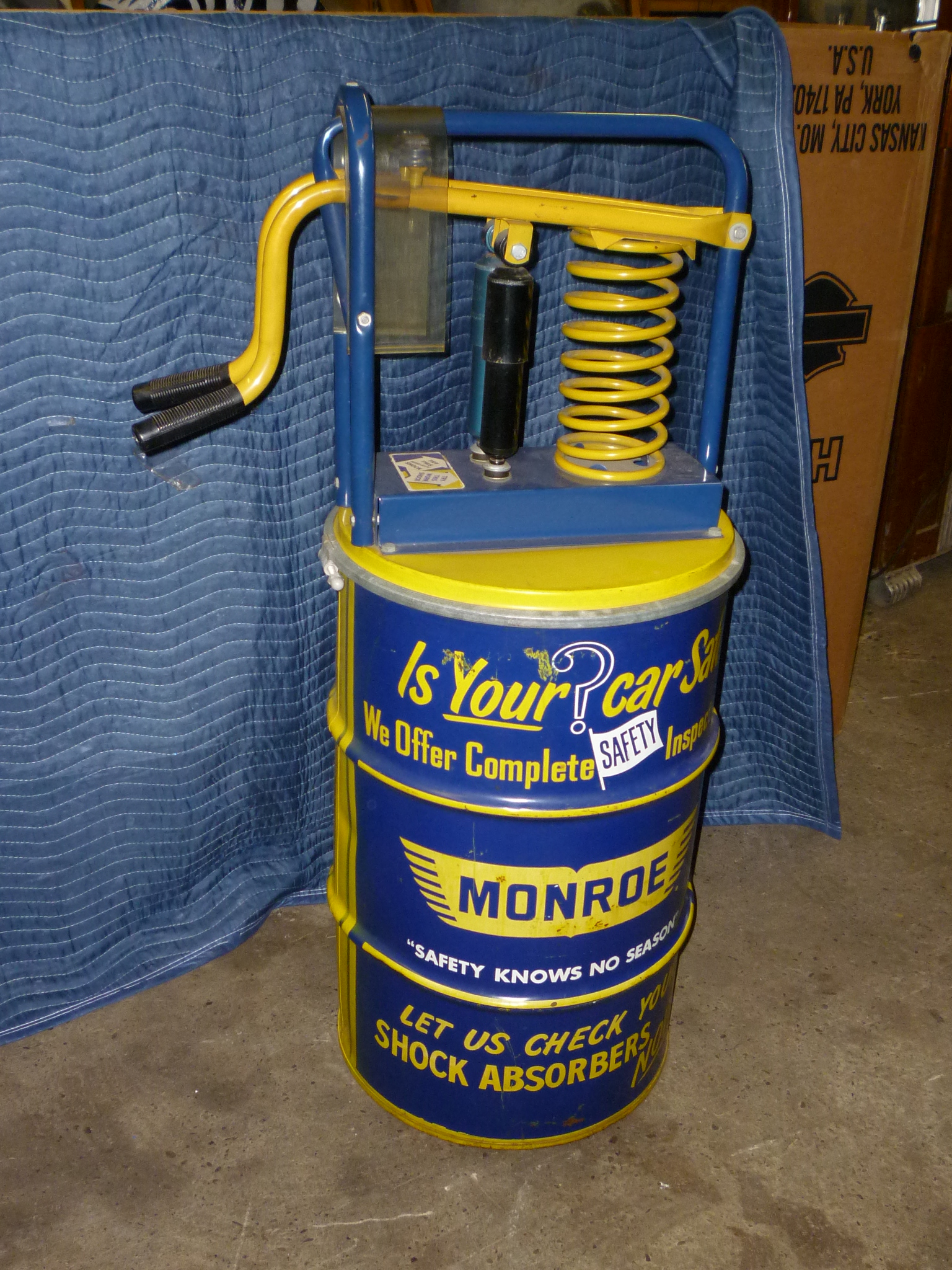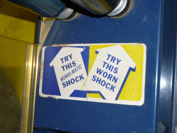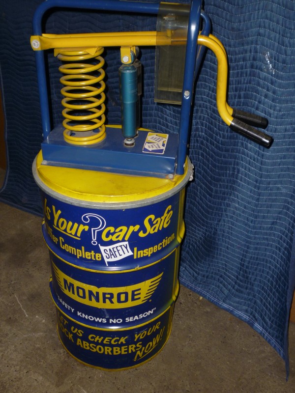 Monroe vintage shock absorber advertising store display measuring 49″ tall with original Monroe shocks. Used as a display to show the difference between a good shock and a used shock. Nice graphics and will display well. Would make a nice addition to any gas/oil collection……….