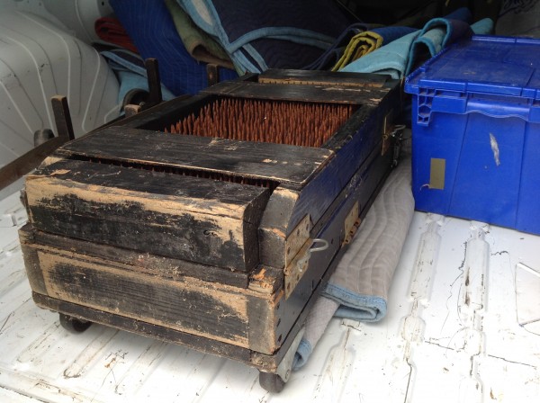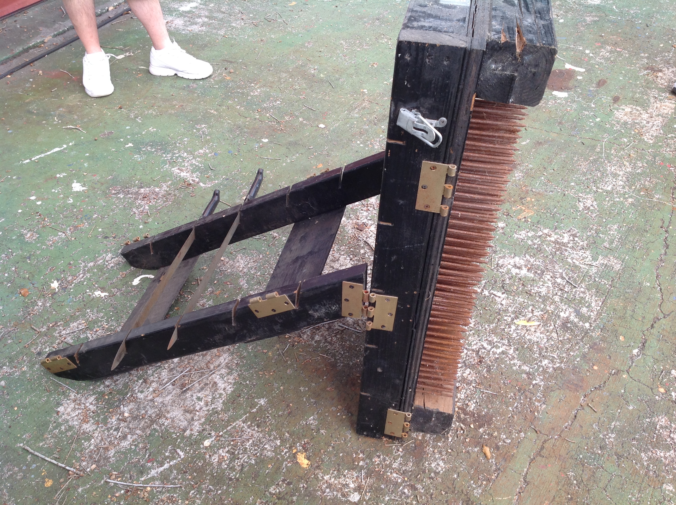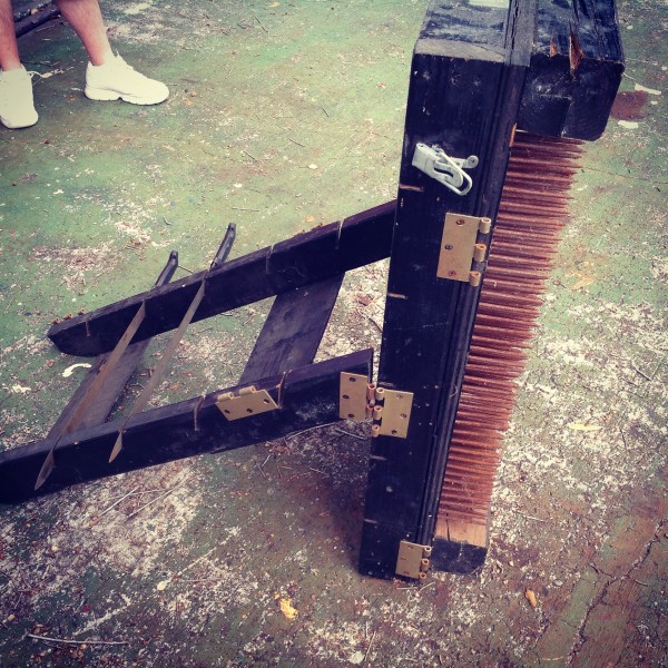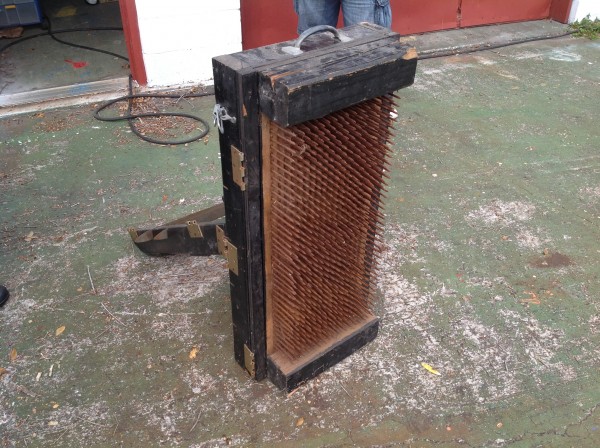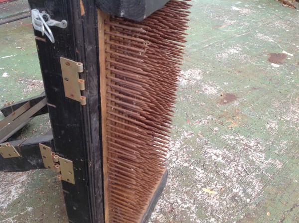 Authentic vintage sideshow bed of nails with sword ladder and broken glass holder box in as found condition. Used years ago along a midway sideshow from Texas. These are hard to find but can be yours to add to your carnival collection at a very reasonable price……..