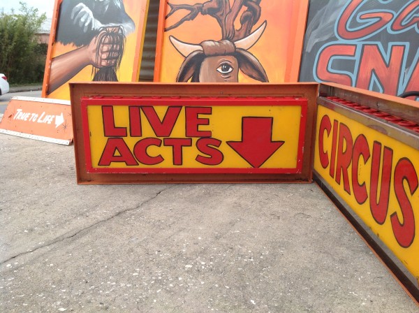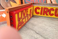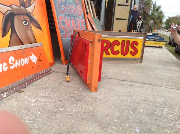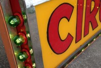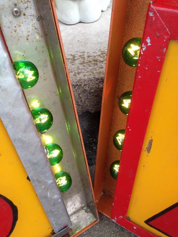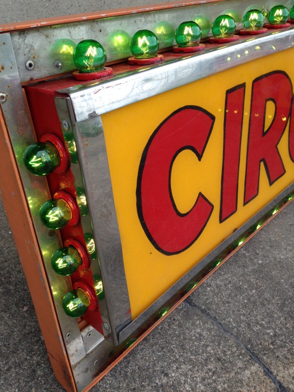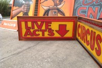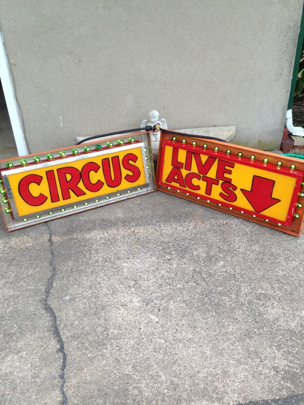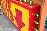 Vintage electric sideshow lighted signs in as found conditon. Heavy steel construction with plug ends. Used along a midway sideshow entrance until the show closed back in the 1990’s. Will come complete with new marquee bulbs. Buy one or both, your choice……..