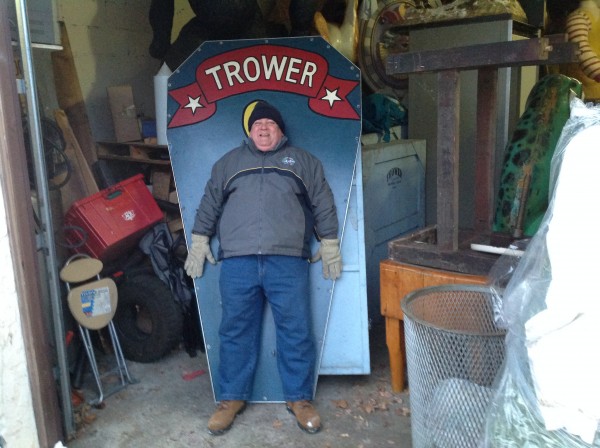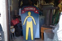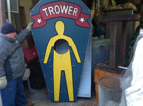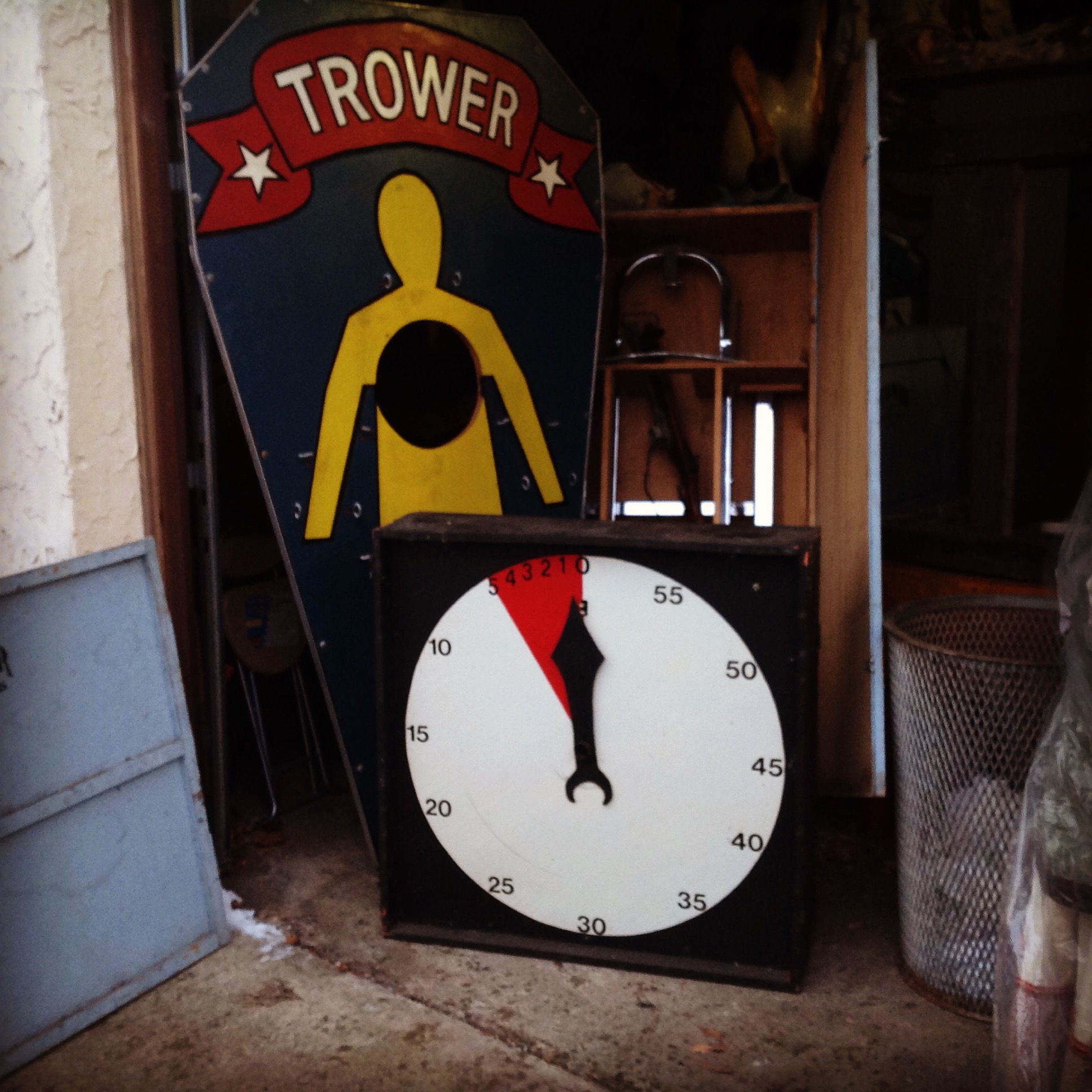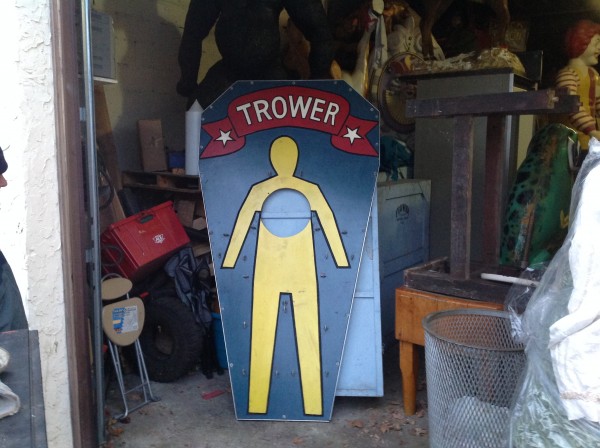 Just in, professionally built, vintage sideshow magic illision complete with stage, clock ,crossbow ,curtains and traveling crates in as found condition. Looks to be complete as the illusion was in storage until we found it last week in an old sideshow trailer down South. Not sure how this works but someone out there knows the trick. Have fun at your next party and amaze your friends…….