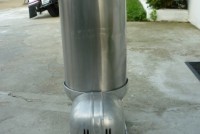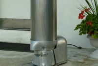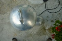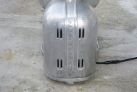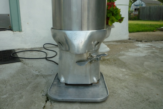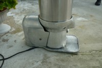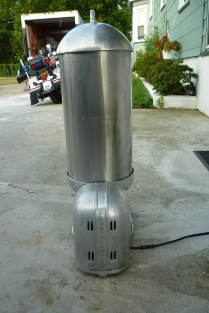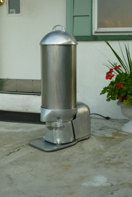 Nice old Sno Master snow cone machine in working condition. A modern looking machine for the era, sleek, strong with an industrial look. Made of aluminum……….