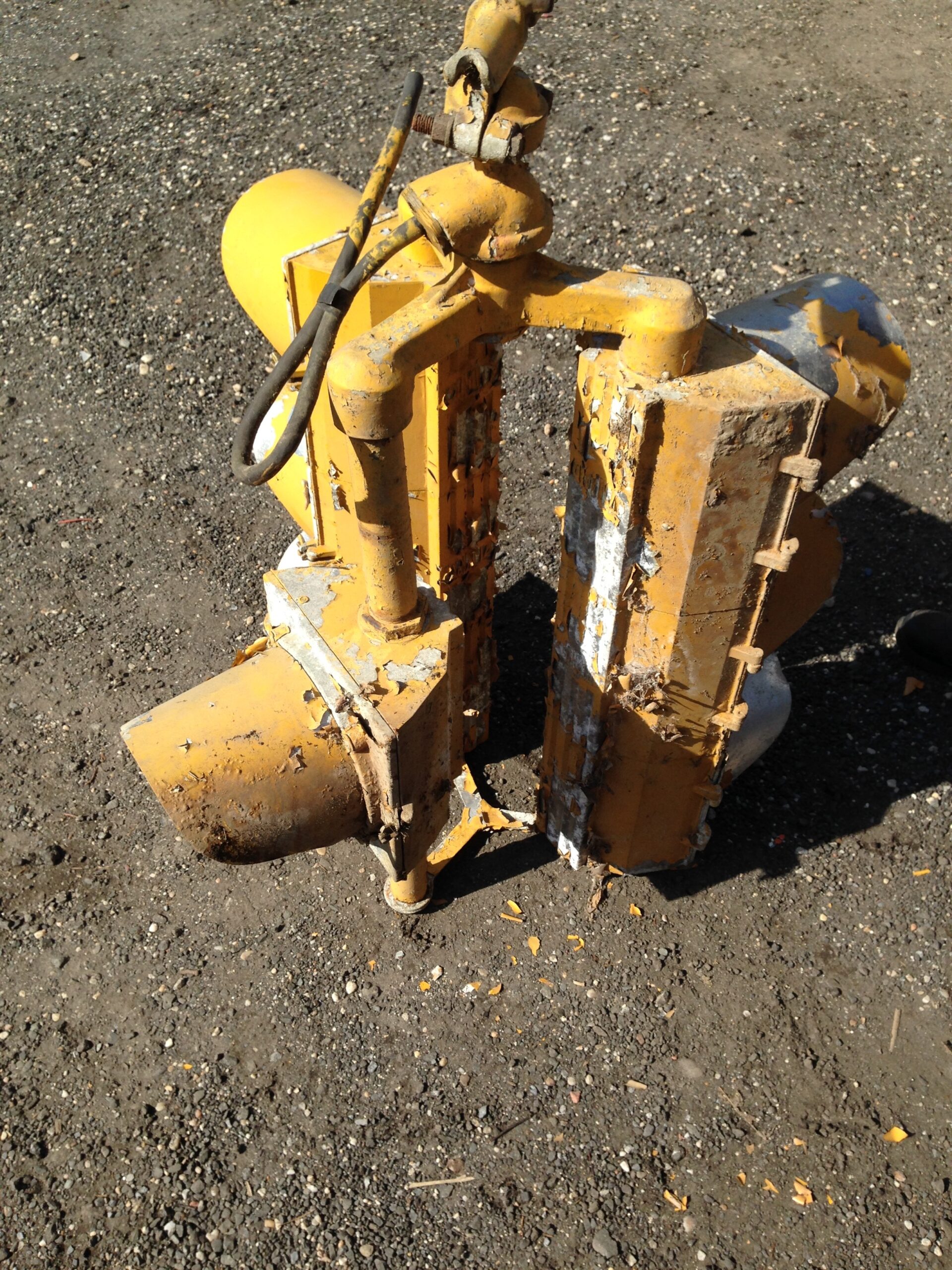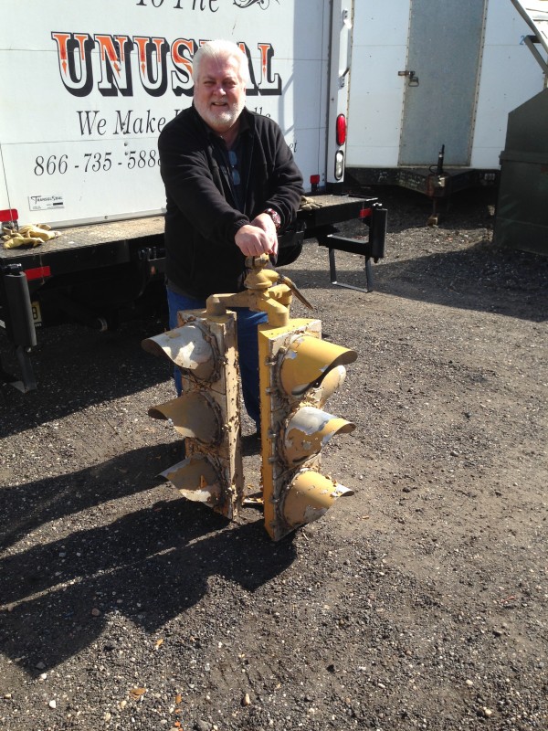 Look what Wid Bill found under an old semi, a vintage three-way intersection traffic light in as found condition. Appears to be original with old paint but will need some restoration. Neat old item for that mancave………..