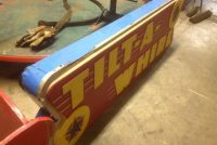 Vintage Tilt A Whirl electric sign in as found condition. Looks good with some minor metal can bumps and dings. Not tested, so some restoration will be necessary. Signs liked this are getting harder to find………….