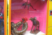 Huge famous World’s of Wonders vintage traveling sideshow in as found condition. Whole display was in storage for the past 25 plus years after the owners decided to close this portion of the show down. The pictures below will show all the displays and signage that are included. If you have any questions, please email or call for additional information. Once in a lifetime collection. Google Ward Hall and C.M Christ for some history on this display and the sideshow business……….