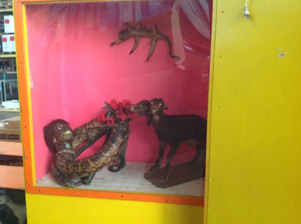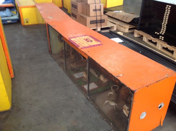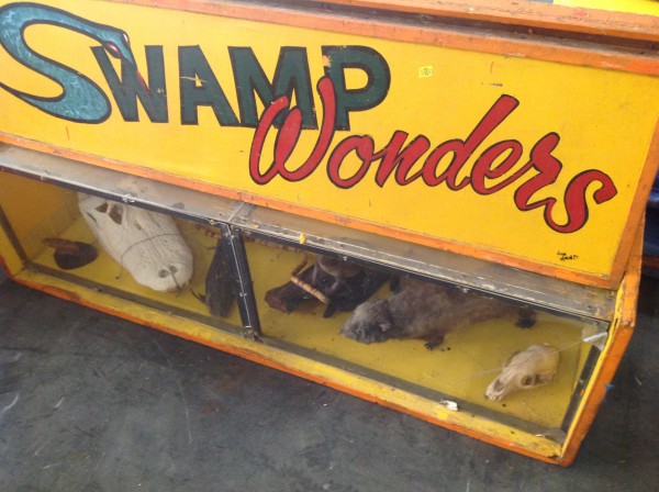Huge famous World’s of Wonders vintage traveling sideshow in as found condition. Whole display was in storage for the past 25 plus years after the owners decided to close this portion of the show down. The pictures below will show all the displays and signage that are included. If you have any questions, please email or call for additional information. Once in a lifetime collection. Google Ward Hall and C.M Christ for some history on this display and the sideshow business……….