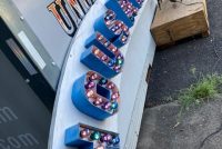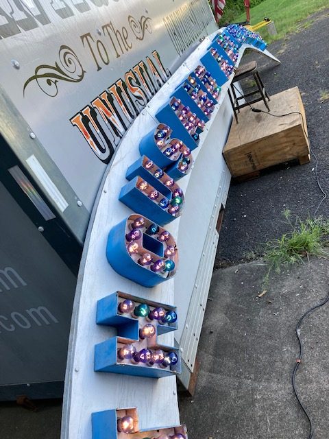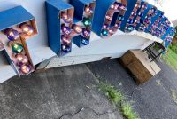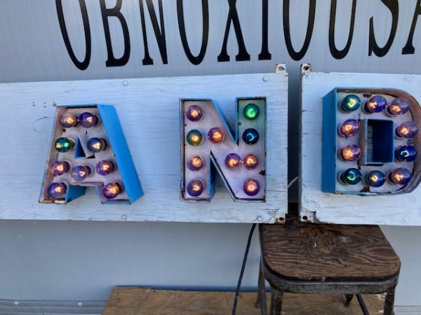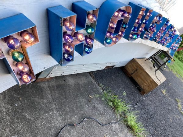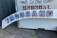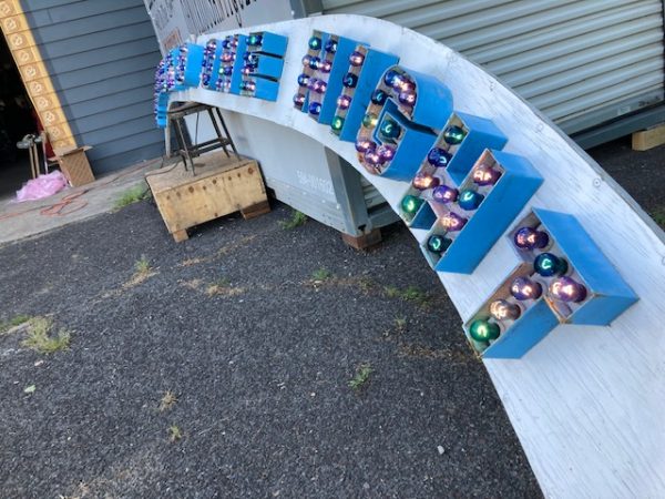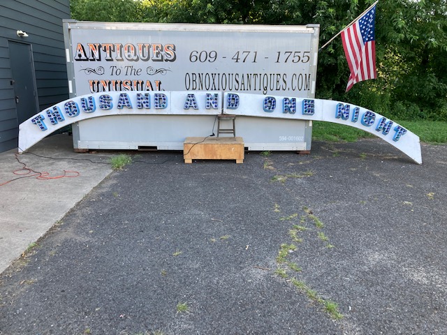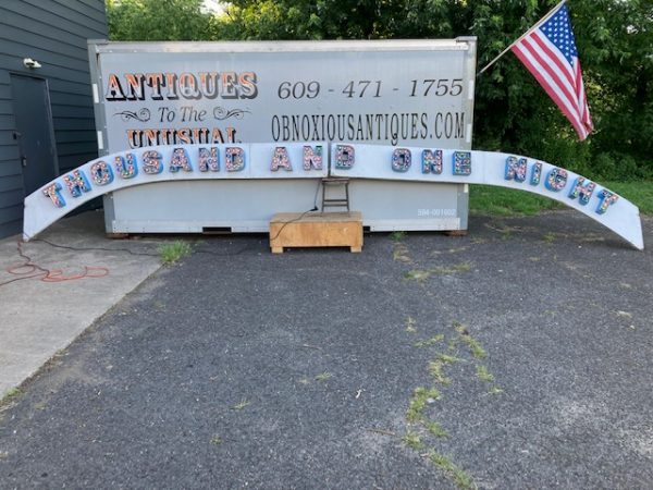 Vintage Trimper’s Aladdin’s Lamp Funhouse Sign in as found condition. Sign is from the Ocean City, MD boardwalk measuring almost 26′ long……
