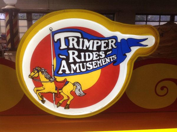Vacuum formed Trimper’s Amusement Park Ticket sign in as found condition. Backlit with metal trim. Great shape for displaying. Measures 61/2′ long x 39″ high x 9″ deep.