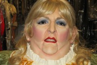 Wonderful example of a vintage circus wax museum fat lady named “Big Birtha”. Beautifully dressed in a costume designed especially for this figure and hand sewn by a seamstress who worked at Ripley’s. Body of fat lady made of heavy fiberglass material and the head is wax. Neat piece and you will not find another……..