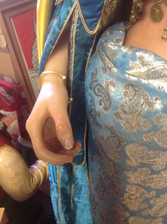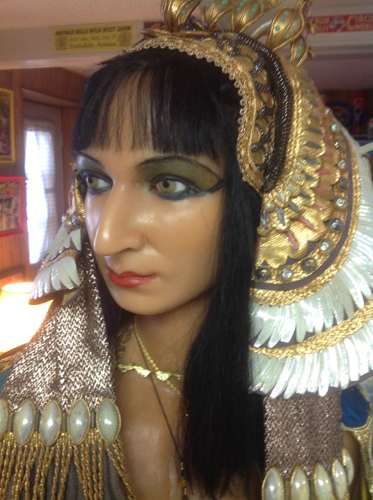 Vintage wax museum full body Cleopatra figure in as found condition. Cleo, to her friends, is from the Vermont Wax Museum that closed its doors many years ago. Fantastic wax detailing and beautiful costume………..