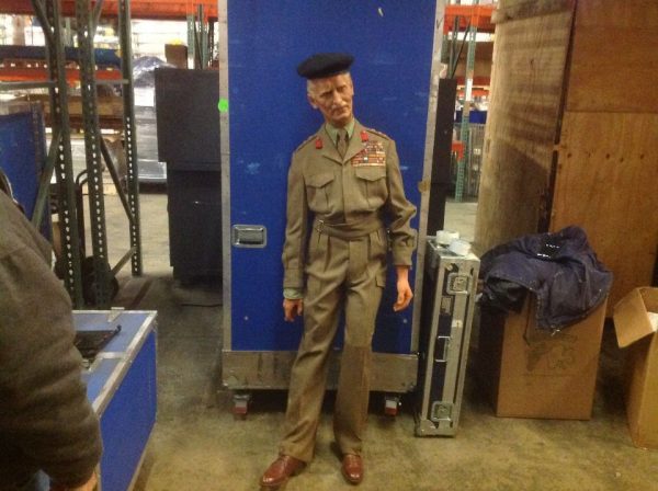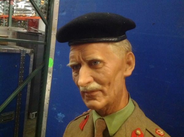 Vintage wax museum full body figure General Bernard Montgomery in as found condition. General Montgomery was nicknamed “Monty” and “The Spartan General” who was a British Army officer who fought in both WWI and WWII. Head signed Gems, London. Nice old Gent with great detail who needs a good home………..