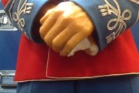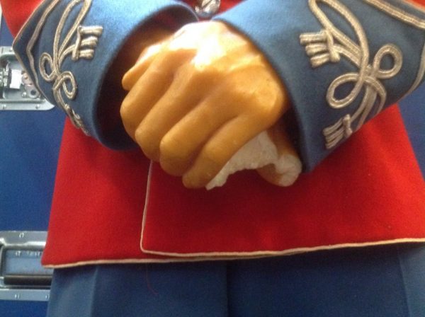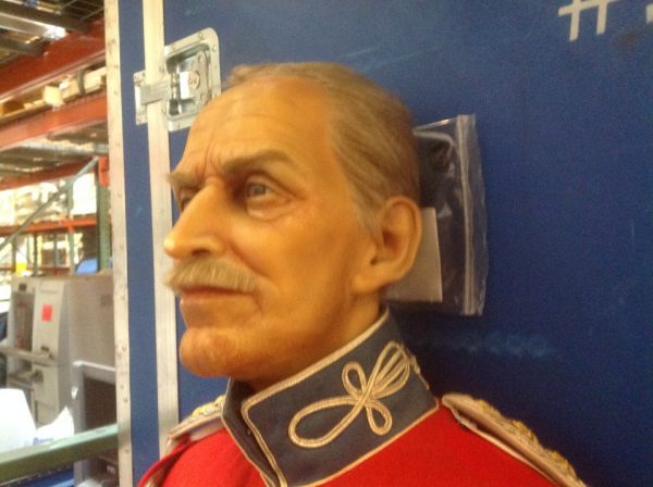 Vintage wax museum full body King Christian X figure in as found condition. Christian X was King of Denmark from 1912 to 1947 and the only King of Iceland between 1918 and 1944. Figure has great wax detailing with outstanding costume. Will need some restoration as the right hand is broken as well as the back portion of the neck. Please see pictures below. Parts are there for repair. The King needs a new Queen……..