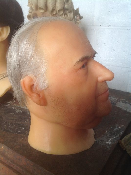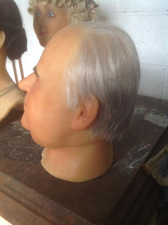 Vintage wax museum head of Helmut Kohl in as found condition. Marked Freeman -Young England. Nice shape………