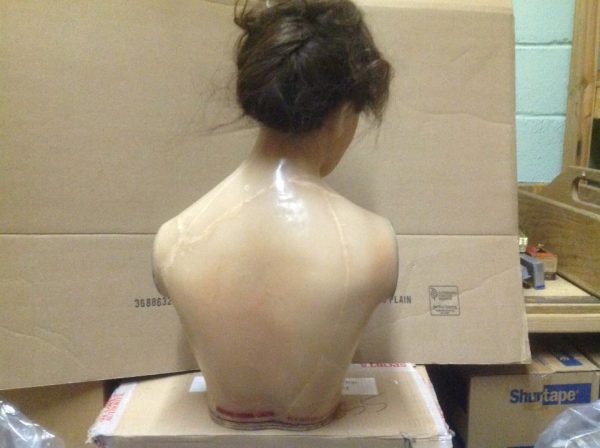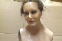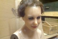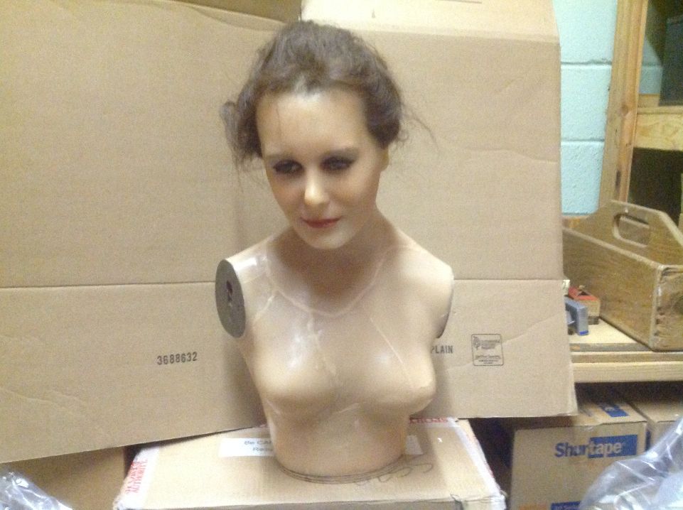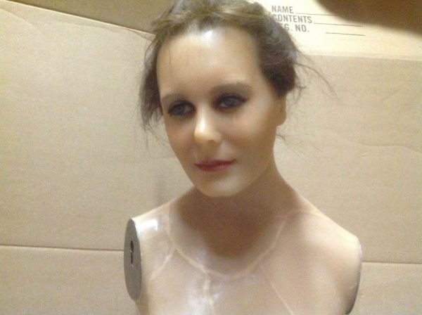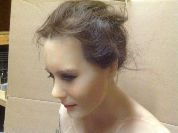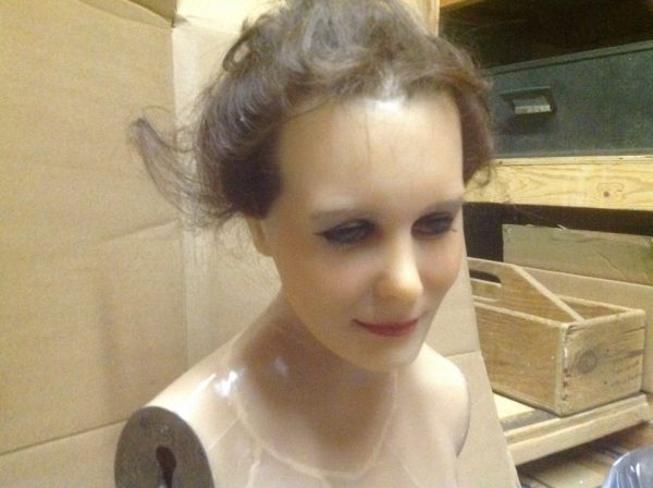 Vintage wax museum head in as found condition. Not sure of her name but she has a beautiful face. Check photo’s to see stress cracks on her chest. Will need a hairdo to make her more attractive……..