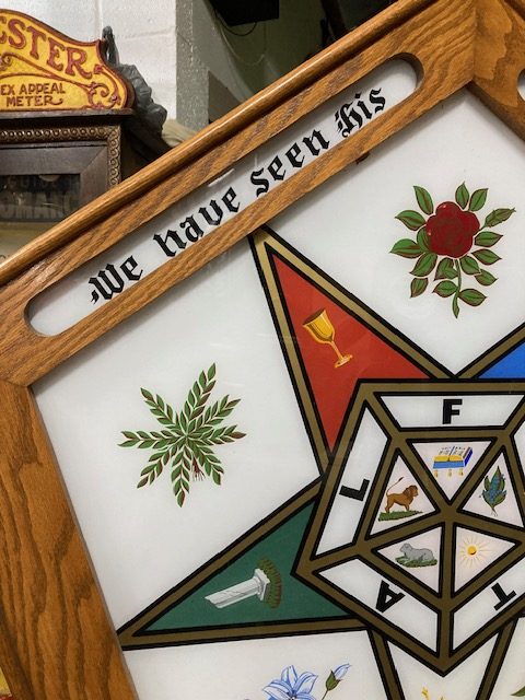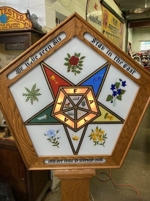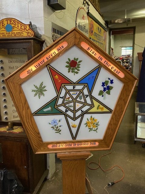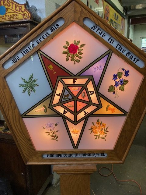Vintage working 1920’s Masonic Lodge Order of the Easter Star Signet sign in as found condition. Wonderful overall shape with working controller. Hard to find in this condition………..