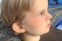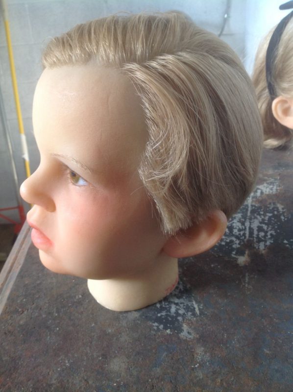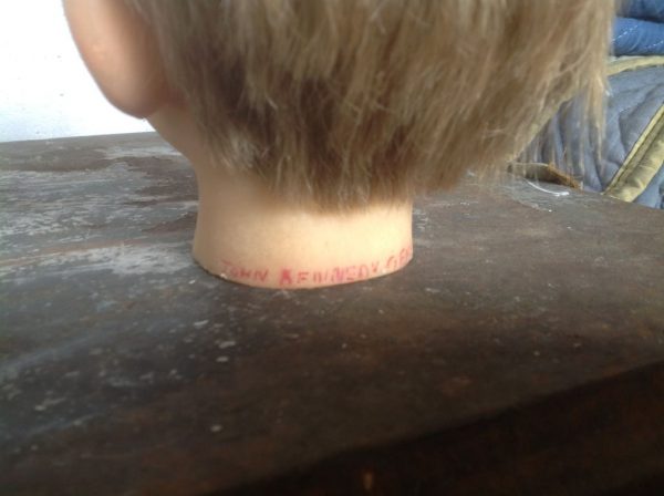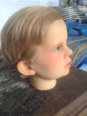 Vintage wax museum head of young boy Kennedy in as found condition. Beautiful detailing with soft features marked Gems London. Nice condition……………