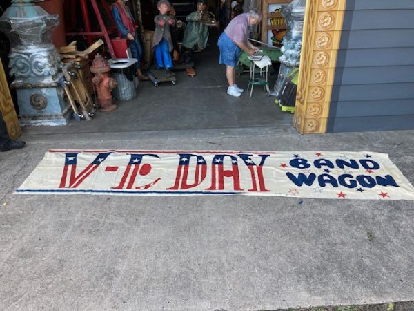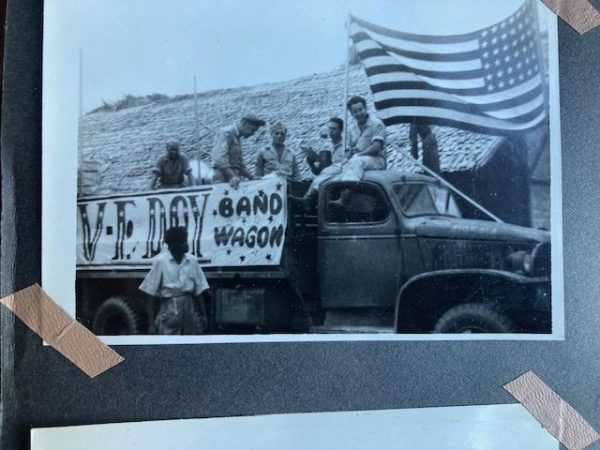 China Burma India Theater during the war. Measures about 3×12 feet. You’ll see this is the same banner that is on the parade truck that’s next to the Hitler effigy hanging from a noose. VE parades were occurring all over the world in some capacity to celebrate the death of Hitler, and these stationed troops held their own parade along with the locals they were protecting. Album and banner both included, some amazing historical photos are in there.