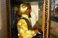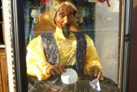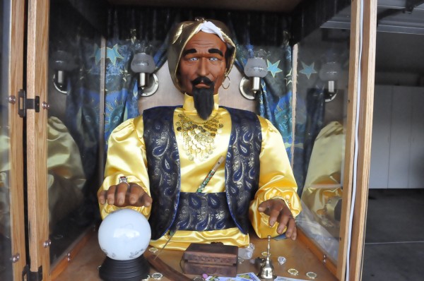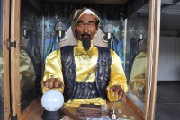 Insert money, eyes , head and jaws move while his arm moves left to right over crystal ball…….